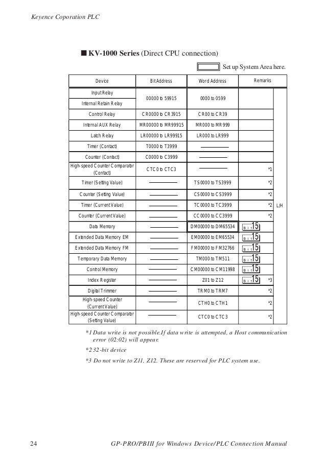 GP-PRO/PBIII for Windows Device/PLC CONNECTION MANUAL Keyence Corporation PLC. Reading the GP-PRO/PBIII Device/PLC Connection Manual This document is designed as an addition to the latest GP-PRO/PBIII for Windows Device/PLC Connection manual's Keyence Corporation data. When connecting a Factory Gateway unit, please substitute the words 'Factory Gateway' for this document's 'GP/GLC/ST'.